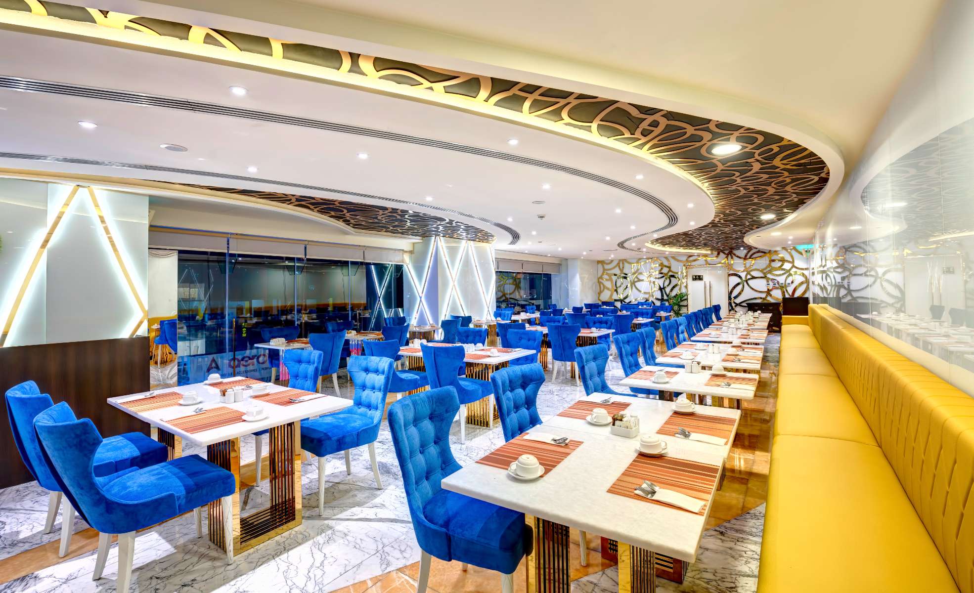 کافهای لوکس در لابی هتل که مناسب ملاقاتهای دوستانه و کاری است. اینجا میتوانید انواع قهوههای خاص، چای عربی، شیرینیهای تازه و ساندویچهای سبک را امتحان کنید.